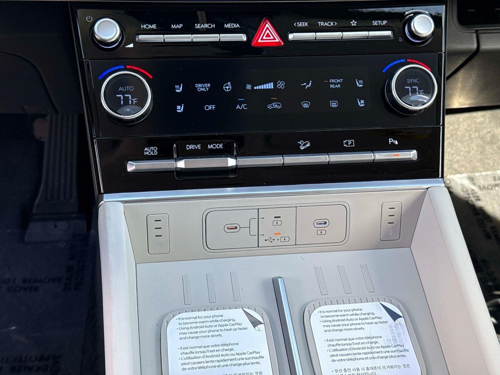 - Radio: AM/FM/HD Bose Premium Audio System -inc: 12 speakers including subwoofer, external amplifier, 12.3" wide touchscreen, wireless Apple CarPlay and Android Auto, Bluetooth® hands-free w/wireless audio streaming, dynamic voice recognition, USB connectivity, SiriusXM, wifi hotspot, Blue Link connected car system, navigation system including traffic flow w/incident data via HD Radio (HERE), OTA updates and rear seat quiet mode