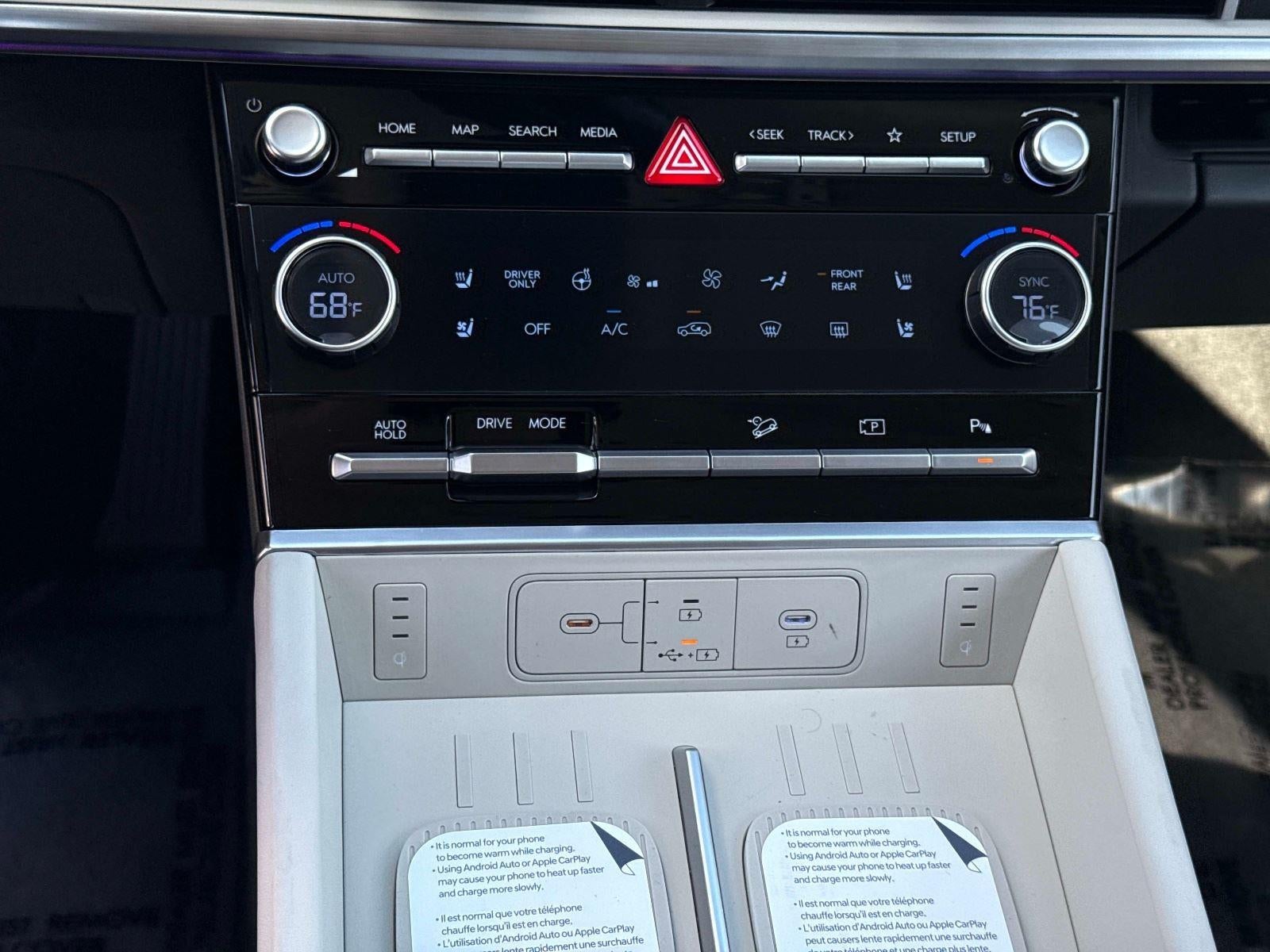 - Radio: AM/FM/HD Bose Premium Audio System -inc: 12 speakers including subwoofer, external amplifier, 12.3" wide touchscreen, wireless Apple CarPlay and Android Auto, Bluetooth® hands-free w/wireless audio streaming, dynamic voice recognition, USB connectivity, SiriusXM, wifi hotspot, Blue Link connected car system, navigation system including traffic flow w/incident data via HD Radio (HERE), OTA updates and rear seat quiet mode