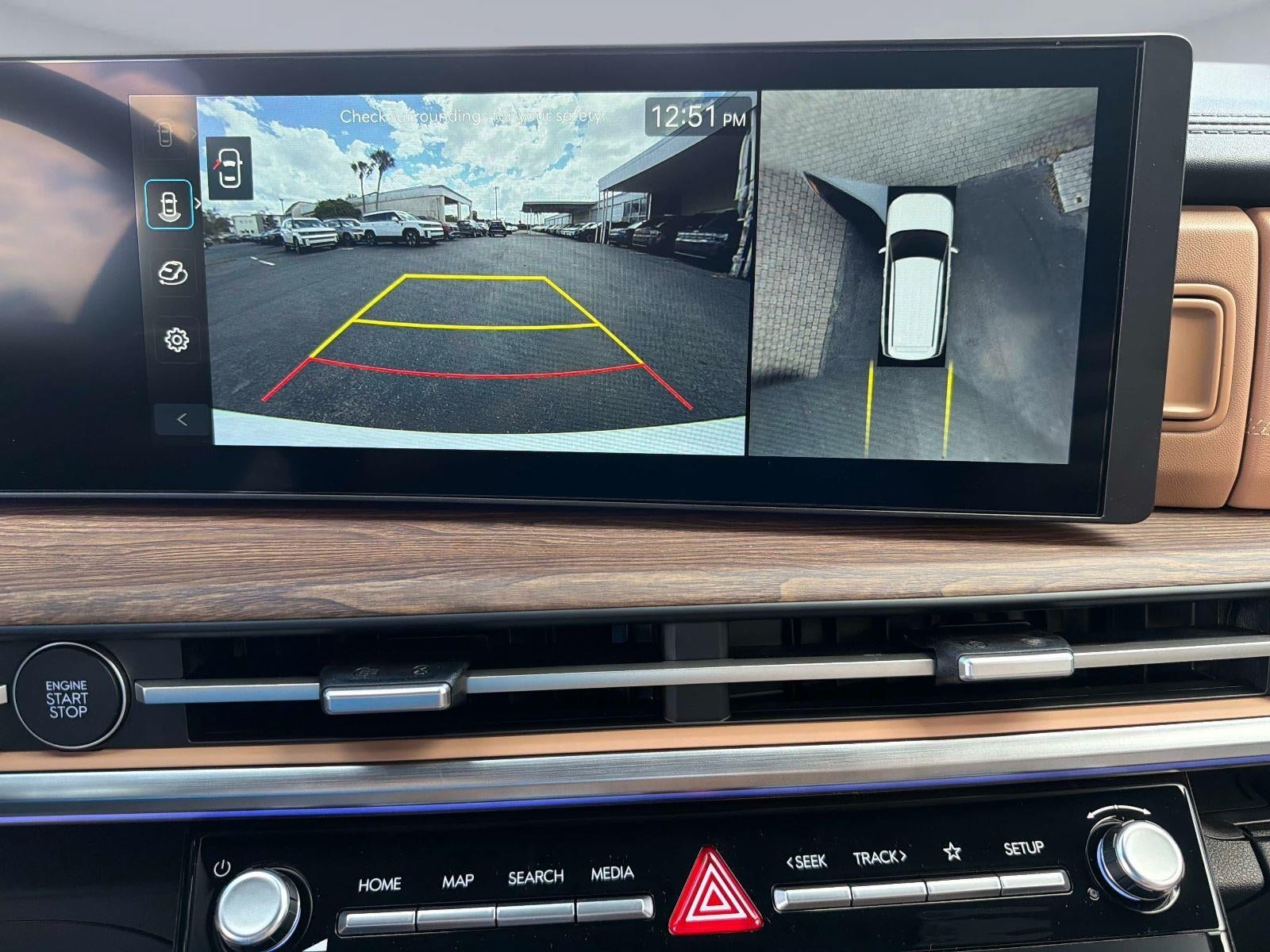 - Radio: AM/FM/HD Bose Premium Audio System -inc: 12 speakers including subwoofer, external amplifier, 12.3" wide touchscreen, Apple CarPlay and Android Auto, Bluetooth® hands-free w/wireless audio streaming, dynamic voice recognition, USB connectivity, SiriusXM, Blue Link+ connected car system, navigation system including traffic flow w/incident data via HD Radio (HERE) and rear seat quiet mode