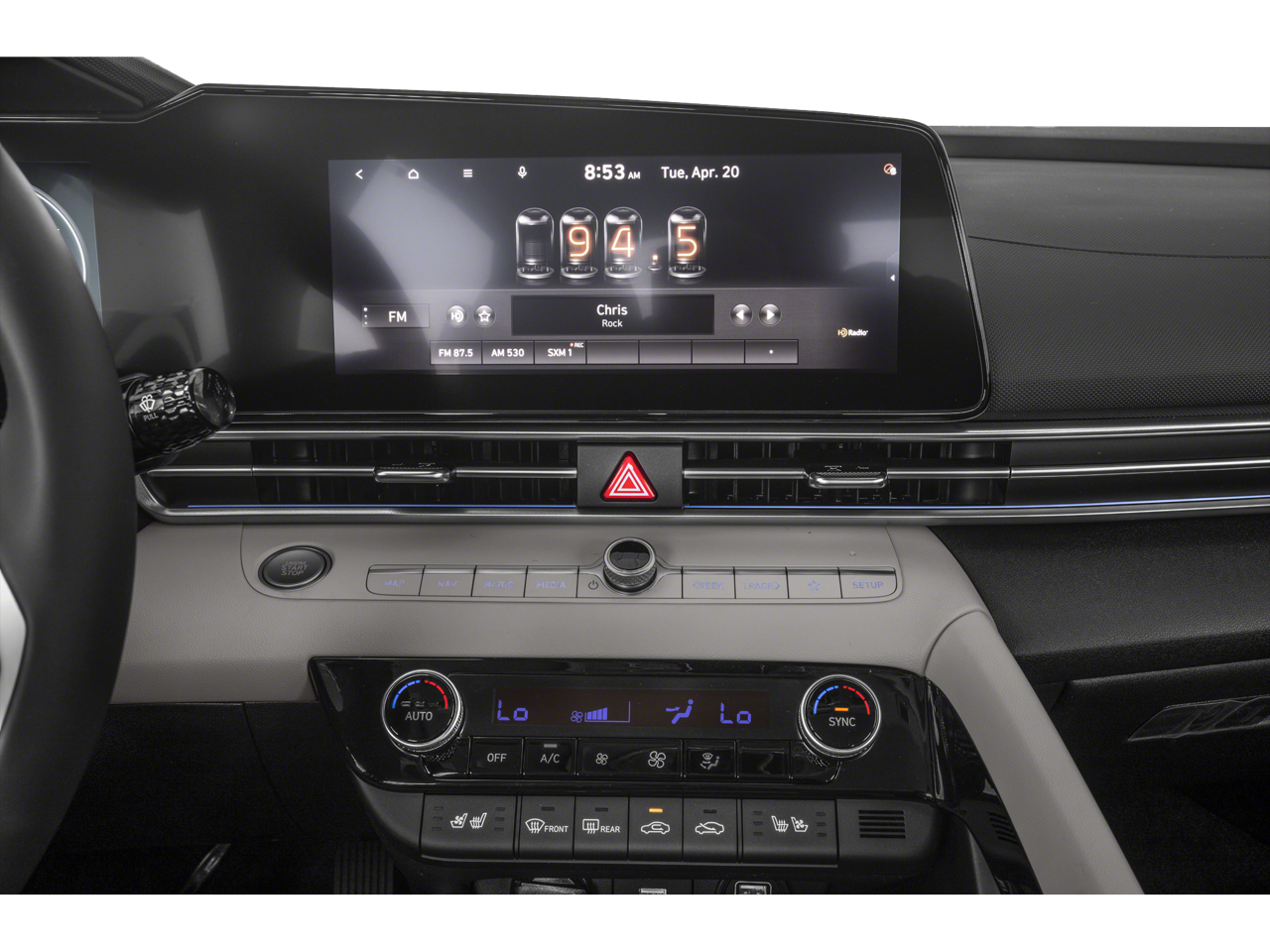 - Radio: AM/FM/HD/SiriusXM Display Audio -inc: 10.25" high resolution touch screen display, navigation, Bose premium audio including 8 speakers, center channel and subwoofer, Blue Link connected car services, SirusXM data services: NavTraffic, NavWeather and Sports and Stocks w/3-month trial, Apple CarPlay & Android Auto, Bluetooth® hands-free phone system w/voice recognition, dual USB ports, dynamic voice recognition, wireless device charging, speed-sensitive automatic volume control and Blue Link guidance package (3-year complimentary trial)